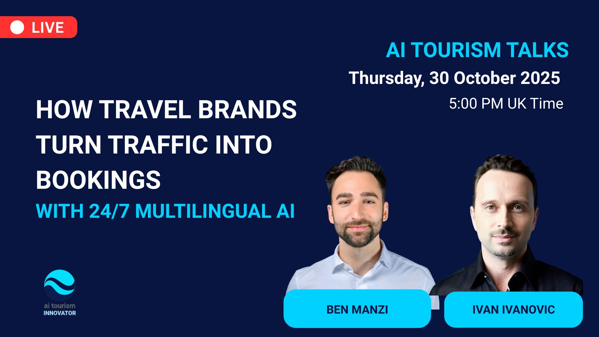 On Thursday, October 30, I’m going live with Benjamin Manzi from Maya to explore how travel brands and tourism businesses can stop losing traffic and start turning it into bookings.